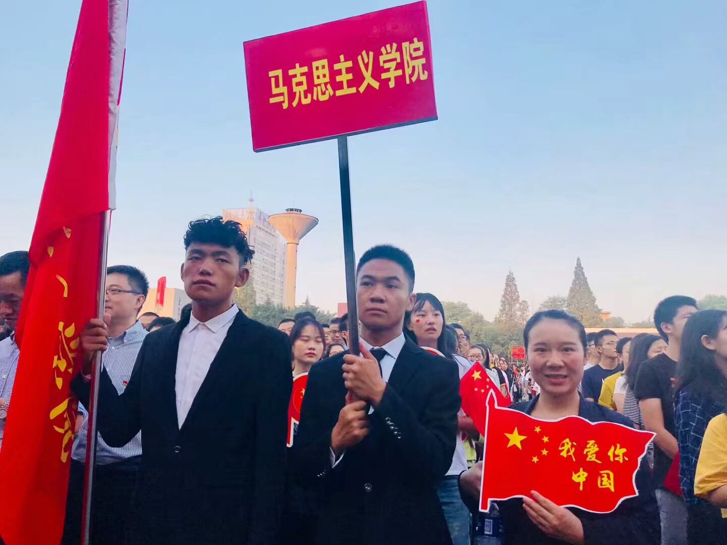 “70年栉风沐雨,70年沧桑巨变,这是我参加的最激动、最难忘的升国旗仪式。祝福祖国生日快乐,繁荣昌盛,国泰民安。”思政11902班李财动情地说。
