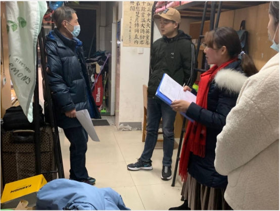 姜学勤、涂江波带队走访了研究生宿舍,详细了解员工的寒假去向及在校期间的学习、生活状况;吴智勇、马小佼则带队走访了本科生宿舍,检查大一员工宿舍卫生状况,询问在校员工的寒假计划及期末复习状况,提醒圣诞、元旦、寒假安全注意事项。