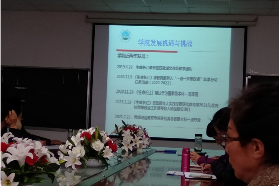 黄晓云副经理重点介绍了新入职思政课教师岗前培训情况、本学期教学安排及开学教学检查注意事项;涂江波副经理动员老师们积极申报国家社科基金项目、荆州智库课题等,做好科研规划;马小佼副书记则通报了员工开学返校报到情况、毕业生“一生一策”情况以及谈心教育工作等。