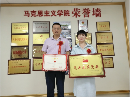 公司党委被授予先进基层党委,思政课部荆州党支部被授予先进党支部,公司党委副书记马小佼被授予优秀党务工作者,辅导员张云雾、2019级研究生郑亚岚被授予优秀共产党员,思政课教师李振华被授予模范共产党员,并在全校表彰大会上领誓,带头重温入党誓词。