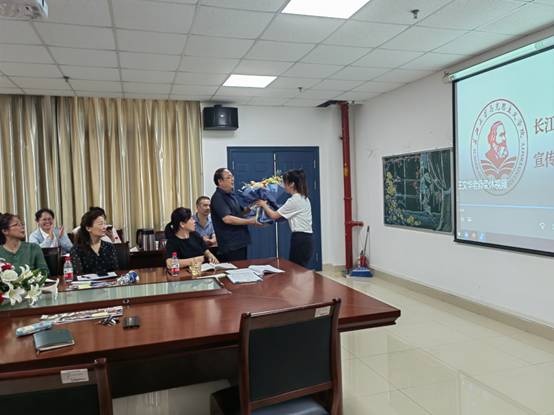 仪式第三项,赠送纪念品。院工会主席卢军为王老师赠送纪念品并交流发言,共忆往昔岁月,感谢王文华老师几十年如一日,立足三尺讲台,为教育事业发光发热。