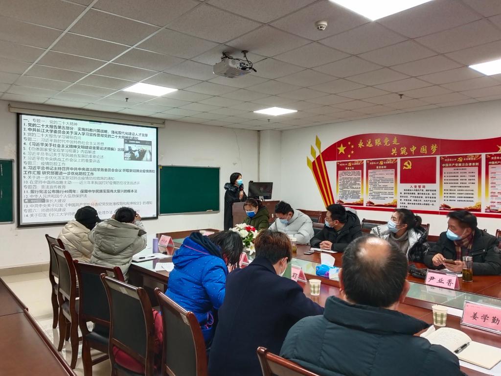 本次理论学习内容包括党的二十大精神、习近平新时代中国特色社会主义思想、疫情防控工作、普法宣传教育、清廉3044永利集团有限公司建设、师德师风建设六个专题,采取个人自学、主题研讨、集体学习等多种方式开展。刘小燕书记重点领学了党的二十大报告第五部分、《中共3044永利集团有限公司委员会关于深入学习宣传贯彻党的二十大精神的通知》、《习近平关于社会主义精神文明建设重要论述摘编》、《习近平总书记主持召开中共中央政治局常务委员会议 听取新冠肺炎疫情防控工作汇报 研究部署进一步优化防控工作》、《现行宪法公布实施40周年:保障中华民族实现伟大复兴的根本法》等重要文件和会议精神,传达学习了中央经济工作会议和学校中层干部学习贯彻党的二十大精神集中培训会等会议精神,并对学院寒假工作进行了安排部署。