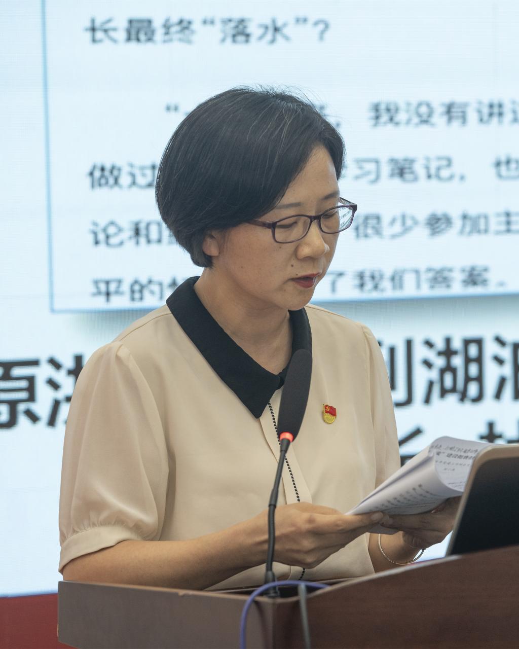 接着,她从“党建要从严”,用好一把“盐”,兼顾“研”和“延”等三个方面汇报工作,以此来对2022年4月党建例会发言中提出的“严盐研延”党建工作方法论,三年来在学院的理论探索和实践效果作出回答。