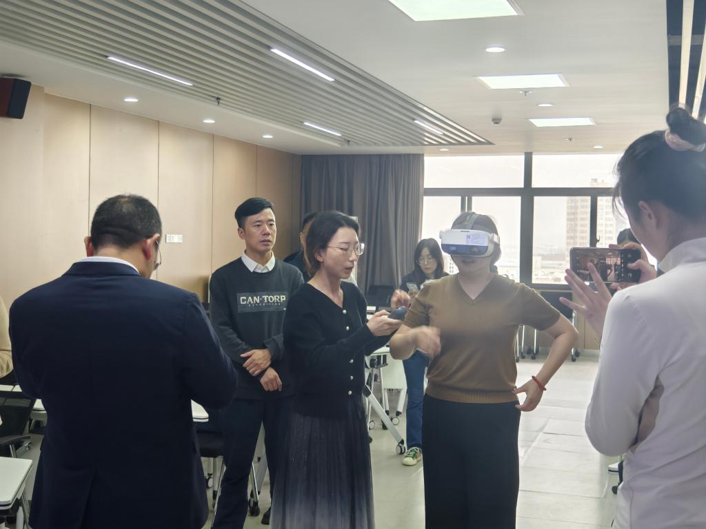 之后,涂经理就公司VR实验室的建造、使用、设备管理及后期运营等多个方面进行了详细介绍,湖南工程学院的几位老师也亲身体验了VR眼镜等先进设备并给出了一致的好评。