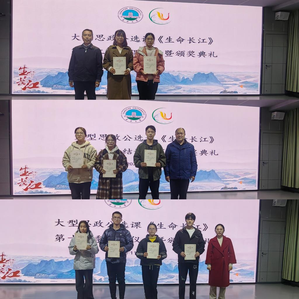 寻长江之踪迹,悟长江之精神。这一季老师与员工双向奔赴、课上与课下互动精彩,在学、思、践、悟中涌现了一批活跃课堂、启发教学的优秀学员。助教团队王悦悦宣布了本季优秀学员获奖名单,并举行了《生命长江》第十二季结课仪式暨颁奖典礼。一等奖获奖者秦雯婧、胡雯琴,由朱业宏老师为他们颁奖。二等奖获奖者邓凎、蓝佳羽、骆静雯,由姜学勤老师为他们颁奖。三等奖获得者程奕烁、付格、严国艺、黎悦,由汤波兰老师为他们颁奖。