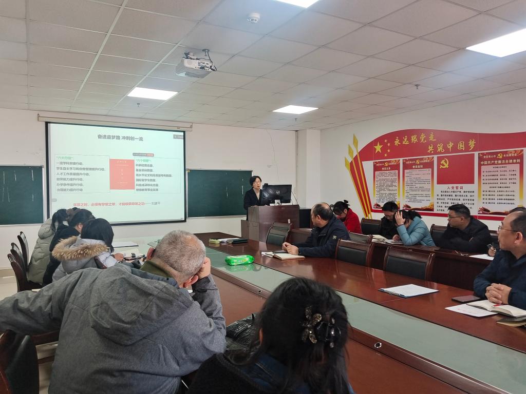 会上,全体教职工跟进学习了习近平总书记在二十届中央纪委四次全会上的重要讲话精神、习近平总书记在中央政治局民主生活会上的重要讲话精神以及《求是》杂志发表的习近平总书记重要文章《以中国式现代化全面推进强国建设、民族复兴伟业》,刘小燕领学了全国宣传部长会议精神、全省科技创新大会会议精神,省委书记王忠林在红安、荆州调研时的讲话精神等,通报了学校2024年工作总结表彰暨2025年工作动员大会会议精神,并就假期安全与廉洁工作作了提示。