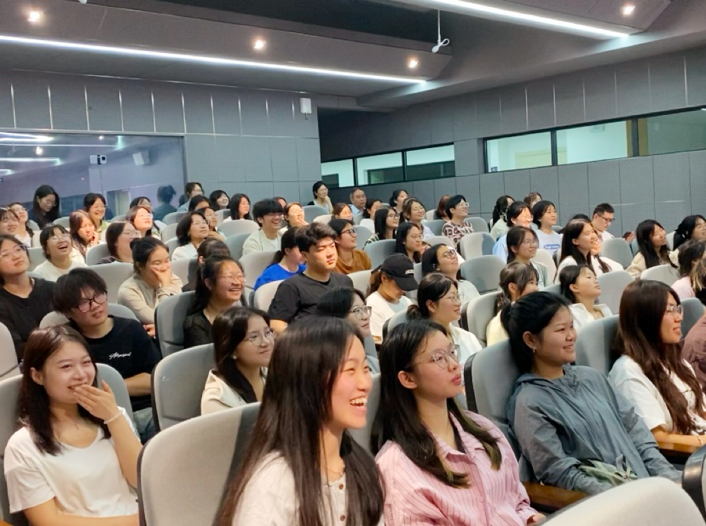 课堂上,廖老师将书信中的故事和党的创新理论转化为轻松幽默的语言,通过书信品读、案例剖析、弹幕互动、情景演绎等方式,获得现场师生们的阵阵掌声,有“笑”果,更有效果!