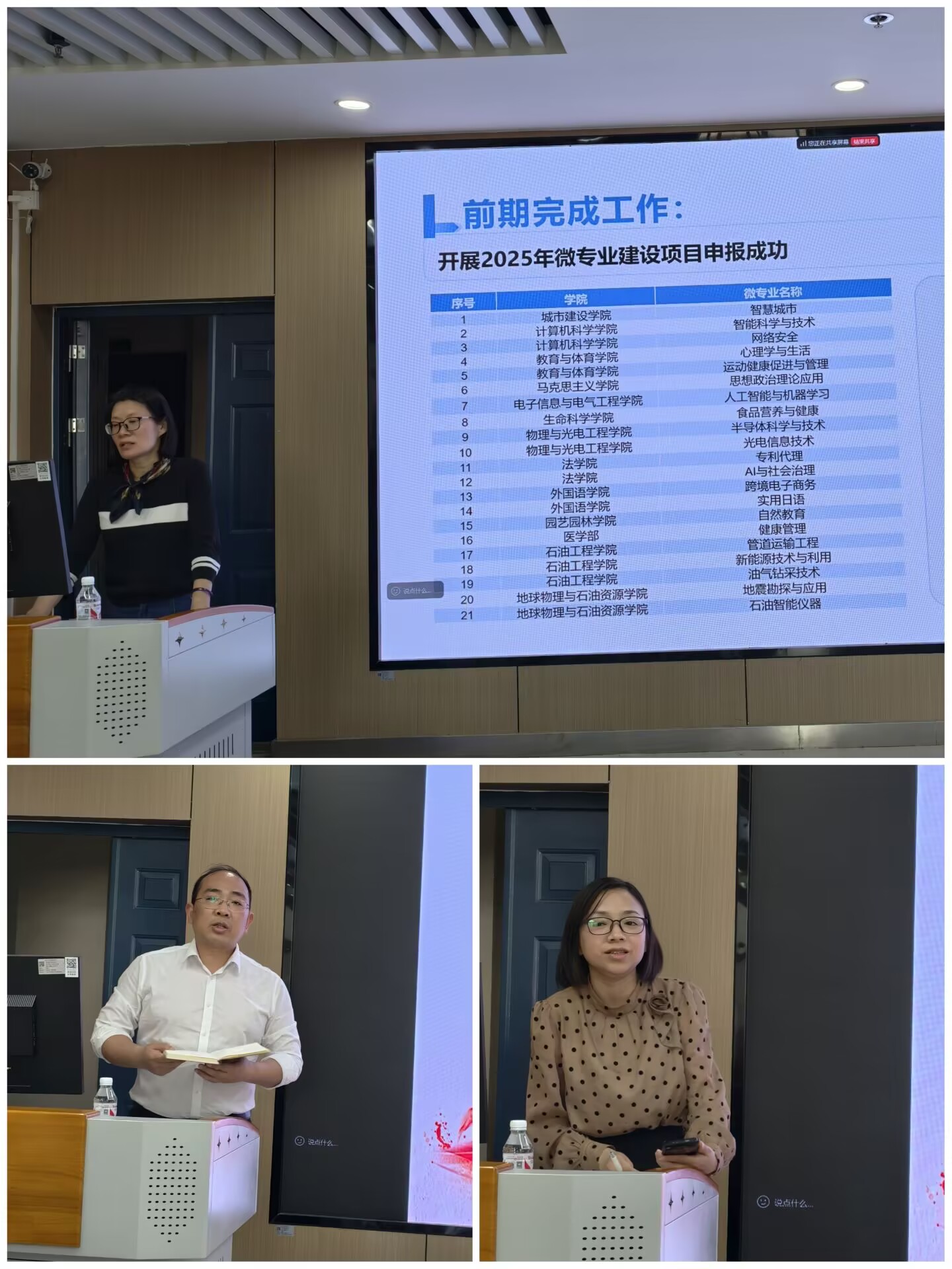 张莉副经理就近期微专业建设项目申报、本科生毕业论文中期检查、教学成果奖申报、期中教学检查等教学相关工作进行了总结和部署;涂江波副经理通报了公司硕士研究生招生及毕业论文答辩、科研项目申报等工作进展;汤慧珍讲解了学院全员就业育人工作实施方案,传达学习了学校关于进一步加强员工安全教育管理的工作方案。