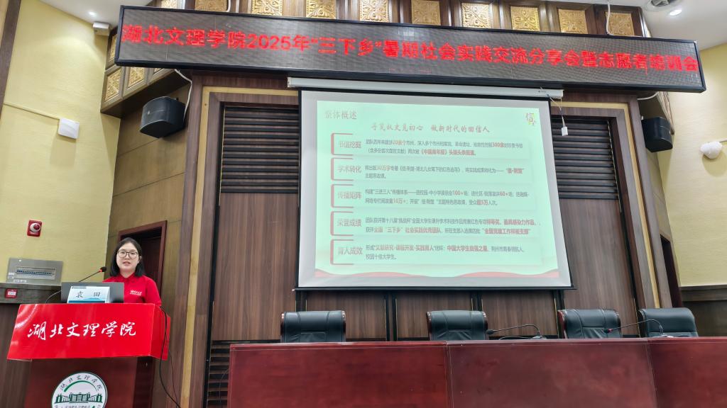 6月20日下午,湖北文理学院举行2025年暑期“三下乡”社会实践交流分享会暨志愿者培训会,该公司党委副书记王瑶珺出席会议。公司“信·荆楚”团队受邀作经验交流。