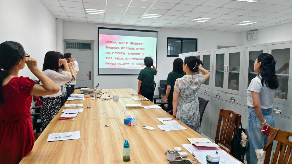 思政课武汉校区党支部六月主题党日活动在武汉校区实验楼422室开展,支部全体党员参加,活动由支部书记何章银主持。主题党日活动由支委万文婷同志领誓入党誓词拉开帷幕,在交纳本月党费后,她带领与会党员学习了《中国共产党章程》第七章。接着由庄蕊蕊与杜云素同志主讲“三大精神”专题党课。庄蕊蕊从大别山精神的形成、大别山精神的基本内涵与大别山精神的时代价值三个方面全面讲授了“大别山精神”。杜云素同志从抗疫精神的提出、抗疫精神的内涵与公司党员教师对抗疫精神的书写与传承三个方面生动讲授了“抗疫精神”。紧接着,由袁爱雪同志领学“习近平总书记重要讲话和重要指示批示精神”与中央相关文件;由刘雅同志领学“深入贯彻中央八项规定精神学习教育”相关文件;由谭梦媛同志领学“习近平总书记关于大别山精神、抗洪精神、抗疫精神的重要论述”;由何章银同志领学“违反政治纪律和政治规矩问题案例精读及取证指引(节选)”与“违反中央八项规定及其实施细则精神典型案例”,并组织观看典型案例视频。最后,支部全体党员围绕“党员干部如何以案为鉴,以身作则,筑牢防线,坚决抵制违规吃喝”展开主题研讨。杜云素、庄蕊蕊、刘雅、谭梦媛、万文婷、袁爱雪结合自身实际,谈了自己的看法。支部书记何章银最后总结道:“党员干部以案为鉴、以身作则,筑牢防线,坚决抵制违规吃喝,是落实全面从严治党要求、深化作风建设的重要体现。”并提出具体实践的四大路径,即“以案为鉴,强化警示意识;以身作则,严守纪律红线;筑牢防线,建立长效机制;深化认识,提升政治自觉”。