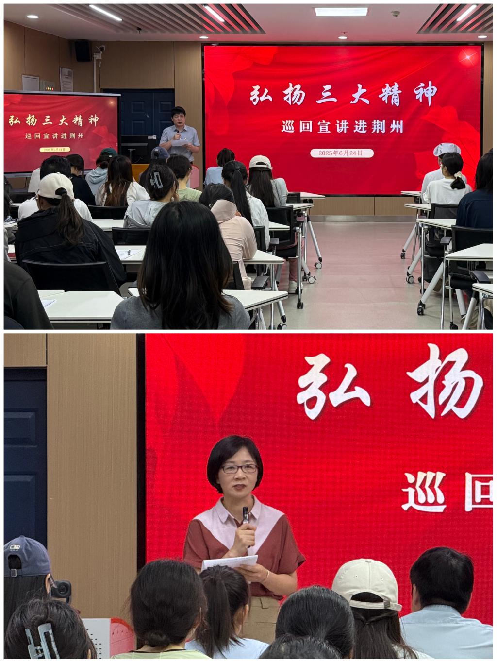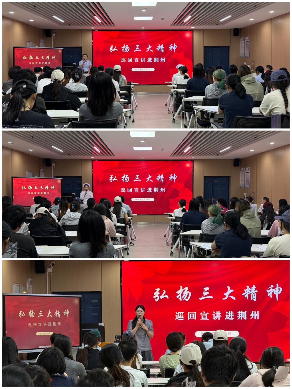 弘扬大别山精神、抗洪精神、抗疫精神,传承和赓续红色血脉。6月24日,由省委宣传部、省委讲师团组建的巡回宣讲小分队走进荆州3044永利集团有限公司,面向师生开展弘扬“三大精神”(大别山精神、抗洪精神、抗疫精神)宣讲。