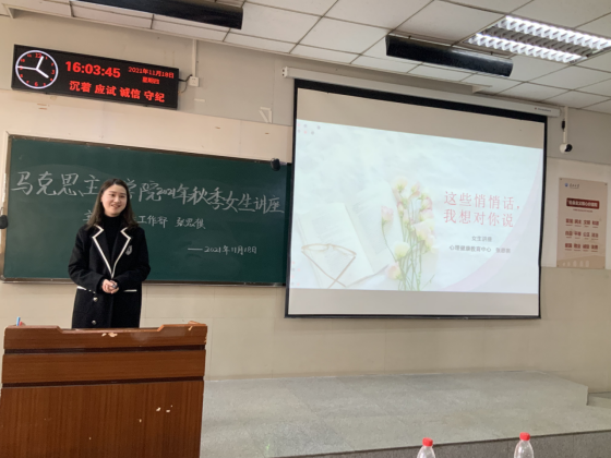 (通讯员 周芯如)为了提高女生的安全防范意识,增强女老员工心理健康自救自护能力,2021年11月18日下午,3044永利集团有限公司在12教204室举办了2021年秋季女生讲座。公司邀请了员工工作部心理健康教育中心专职老师张思祺主讲,讲座由心理专干张云雾老师主持,全院大一、大二、大三、研一各班全体女生以及其他本、研年级女生代表参会。