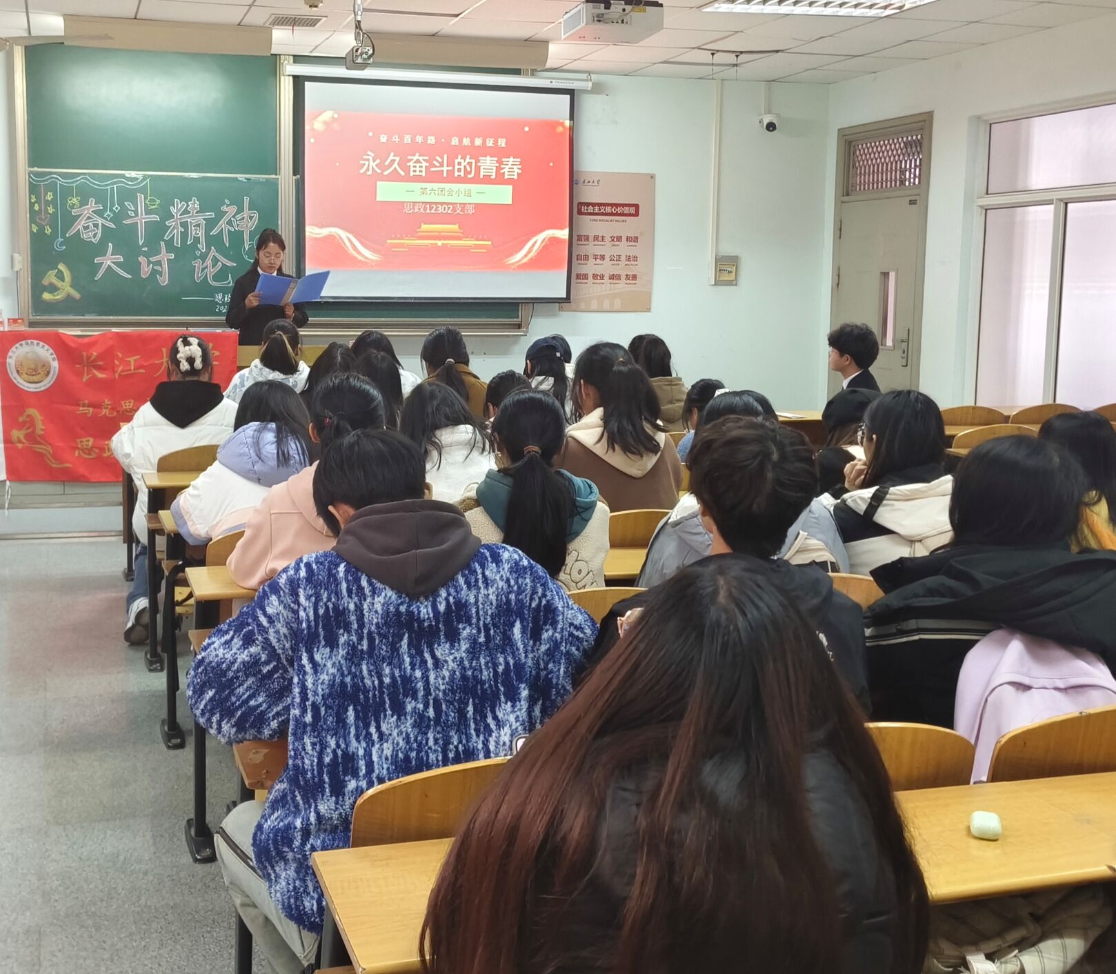 “一代人有一代人的奋斗,一代人有一代人的担当!今天为振兴中华而勤奋学习,明天为创造祖国辉煌未来贡献自己的力量!”思政12101班支部团员王丹在参加完主题讨论后深有感触地说道。